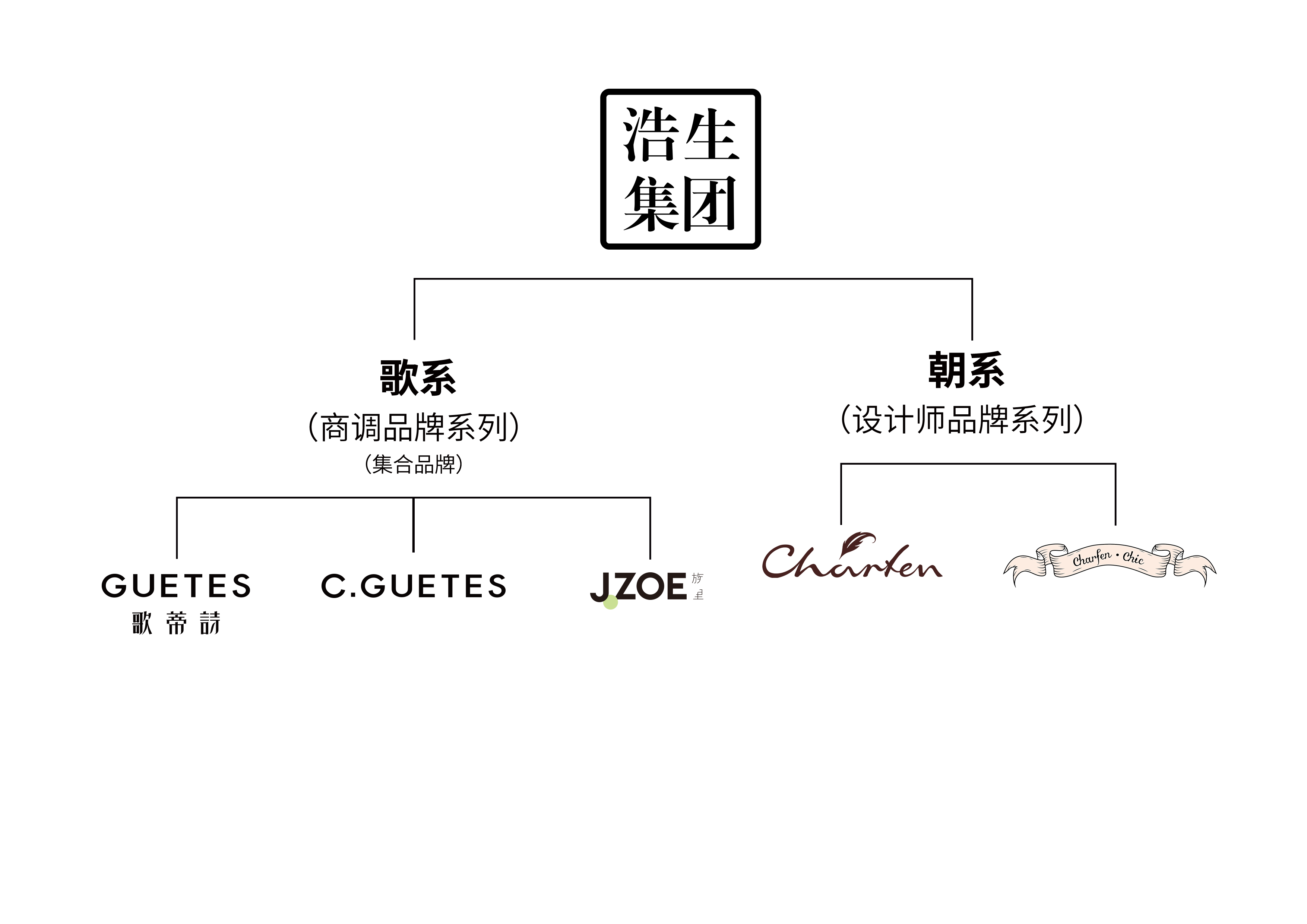 集团旗下拥有两大高端女装品牌——「歌系品牌」与「朝系品牌」。其中歌系品牌含G.GUETES、C.GUETES及J.ZOE族里;朝系品牌含CHARFEN朝峰、CHARFEN.CHIC朝峰希可。通过现代时尚的设计语言,结合高品质面料和考究细节,不仅赋予了视觉上的艺术观感和全新的穿着体验,更表达了都市女性对优雅、自信、幸福的追求。